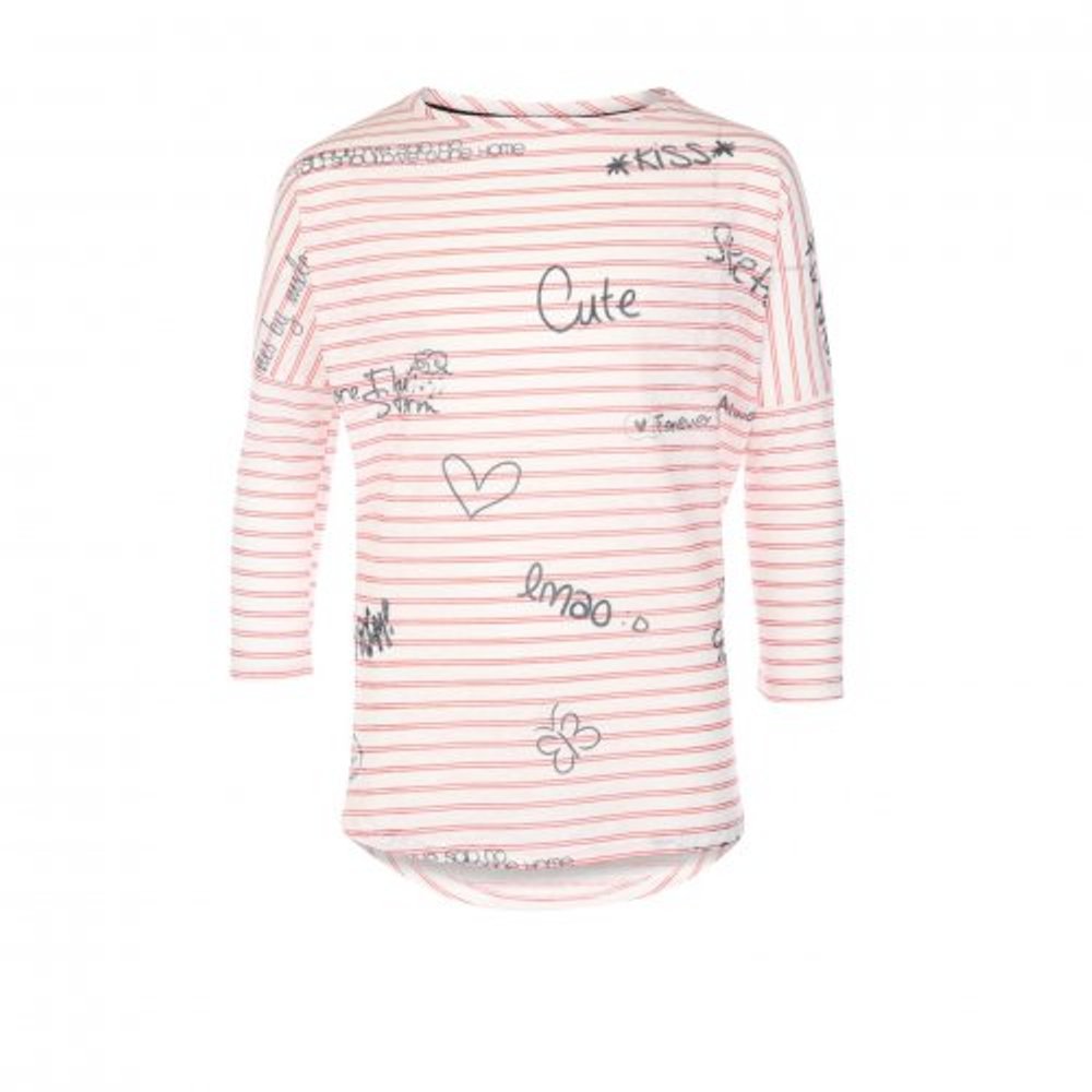 Maritimes 3/4-Arm-Shirt von Geisha in rot/offwhite mit Schrift-Print allover verziert mit kleinen blauen Steinchen. Durch das leichte Material sehr angenehm zu tragen.