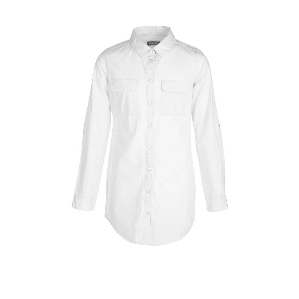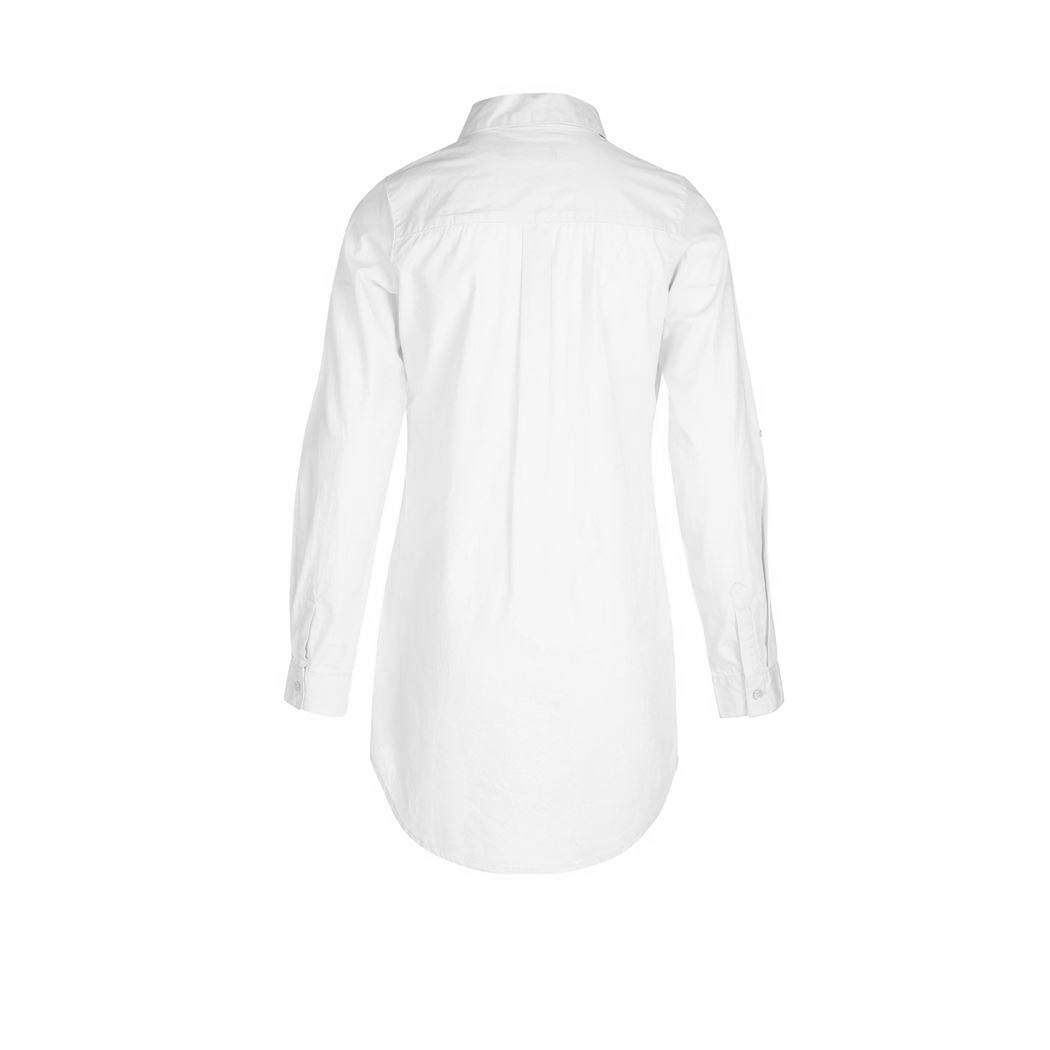 Trendige und klassisch schöne Bluse von Geisha in weiß, taillierte Form, mit seitlichen Schlitzen die für den perfekten Sitz sorgen. Egal ob für den lässigen oder den schicken Anlass- du bist immer richtig angezogen.