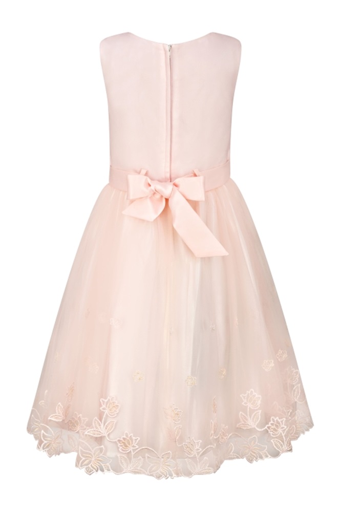 Das Oberteil ist enganliegend und der Rock ist schön schwingend mit Spitze am Saum. Die Taille ziert ein angenähter Gürtel und am Rücken gibt es einen Reißverschluss der für ein bequemes an-und ausziehen sorgt.