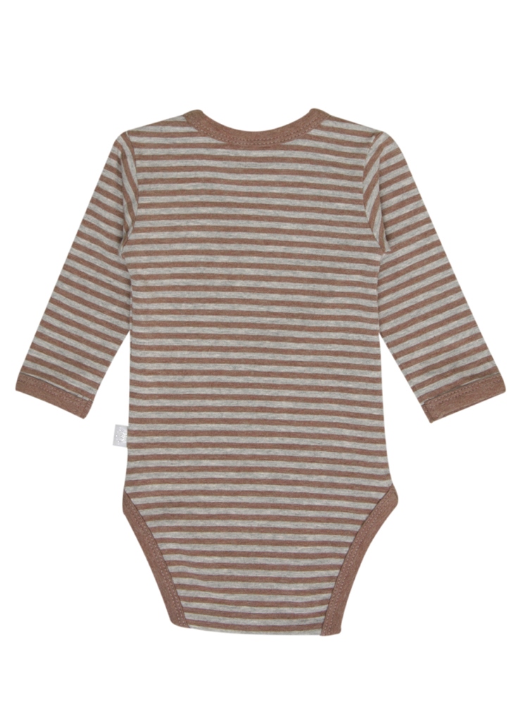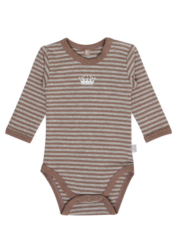 Reizender Langarm-Body im Streifen-Look von Hust & Claire aus äussert weichem Feinripp, mit Kronen-Print. Druckknöpfe an der Schulter ermöglichen ein müheloses An- und Ausziehen. Im Schritt ebenfalls mit Druckknöpfen zu schließen.