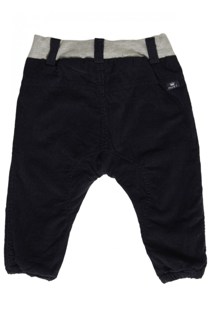Coole gefütterte Kordhose von Hust in navy mit Känguru-Tasche vorne - sehr weiches angenehmes Material, hier drückt nichts. Toller lässiger Look. Der Bund ist innen weitenregulierbar, der Tunnelzug ist nur fake.