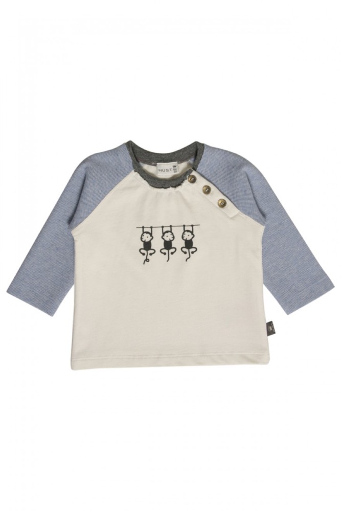 Schönes Sweatshirt von Hust in elfenbein mit Raglanärmeln in Waffeloptik, hübsches Äffchenprint, vorne mit drei Knöpfen - das mag jeder kleine Junge.