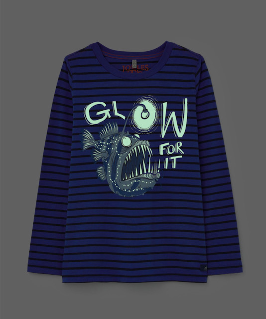 Witziges Shirt/Langarm-Shirt für die Jungs von Joules mit witzigem, bei Nacht leuchtendem, Front-Print.