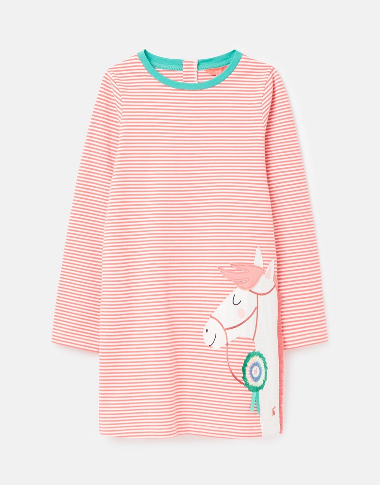 Joules Mädchen Langarm-Kleid ROSALEE Streifen Pony pink