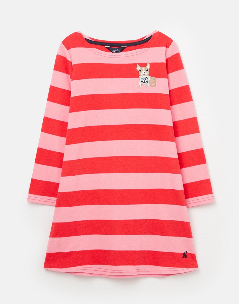 Joules Mädchen Langarm-Kleid RIVIERA Streifen rosa Hund 98 - 3y