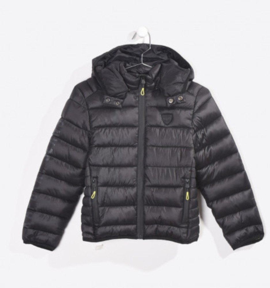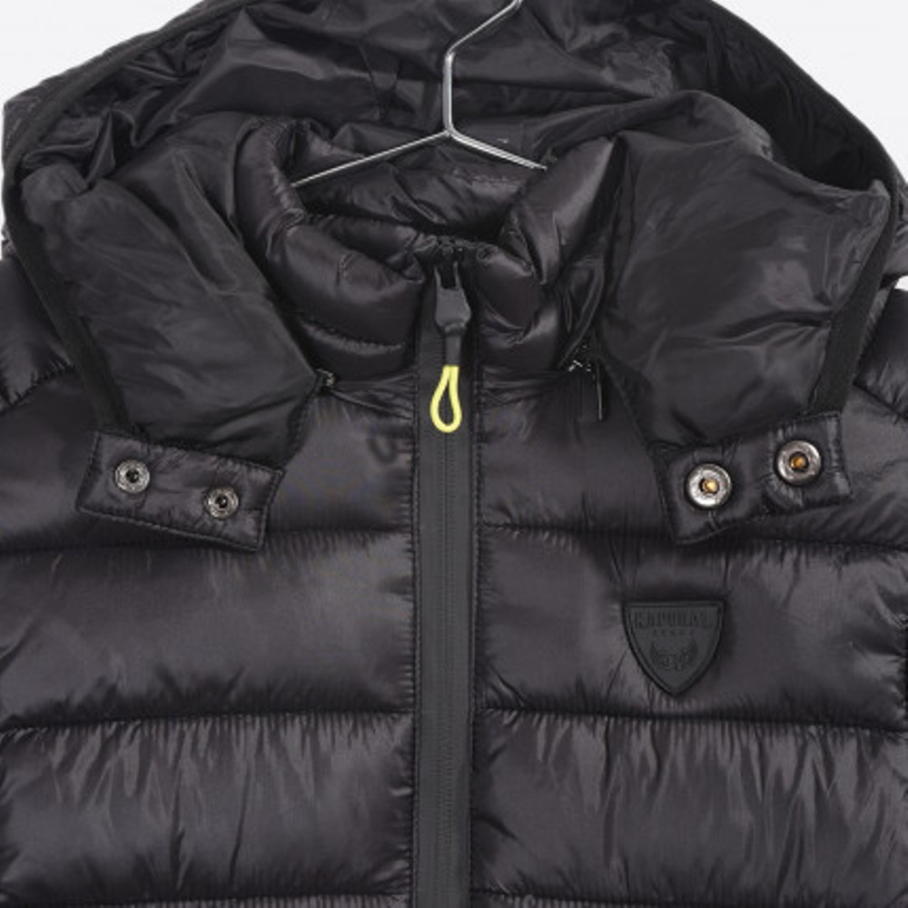 Gesteppte Winter-Jacke von Kaporal in schwarz mit Reißverschluss, abnehmbare Kapuze, Zipper an den Taschen.