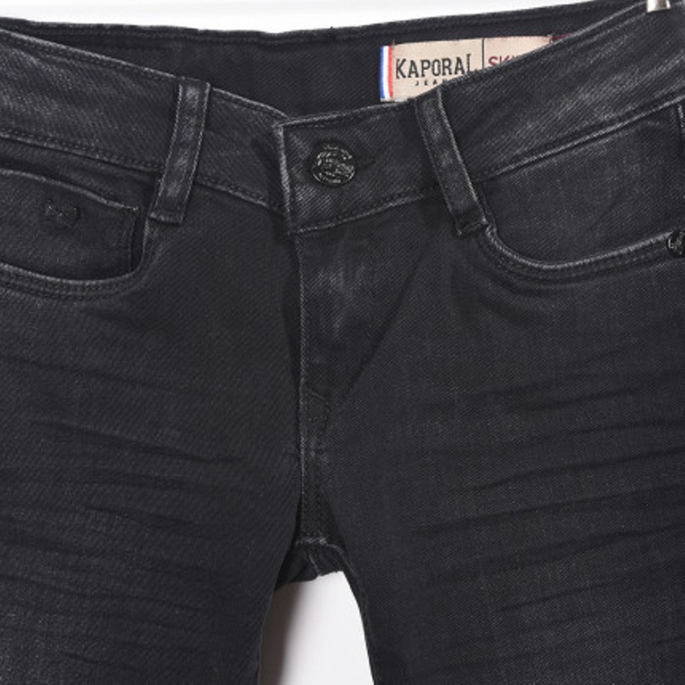 Skinny-Fit Jeans von Kaporal in schwarz denim, leichte Waschung, super Popo-Taschen, innen weitenregulierbar.