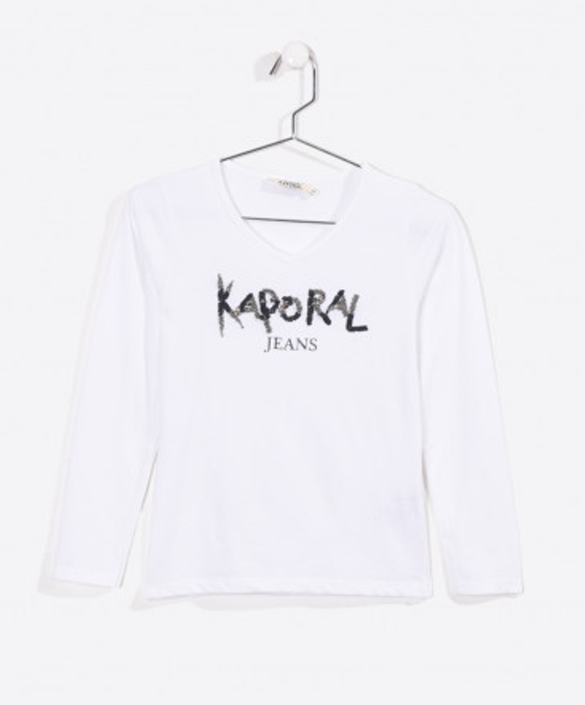 Schönes Langarm-Shirt von Kaporal in weiß mit Logo-Pailletten-Perlen-Front.