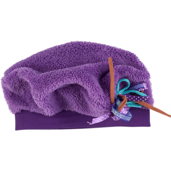 Weiche Teddy-Mütze von Kiezel-tje in purple mit Schleifen-Applikation.