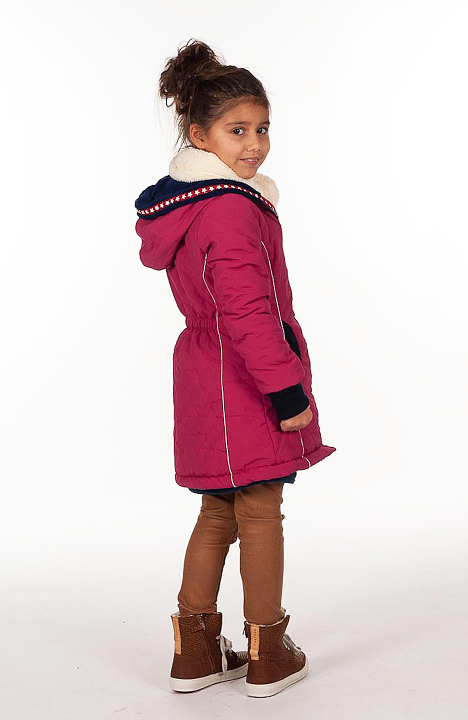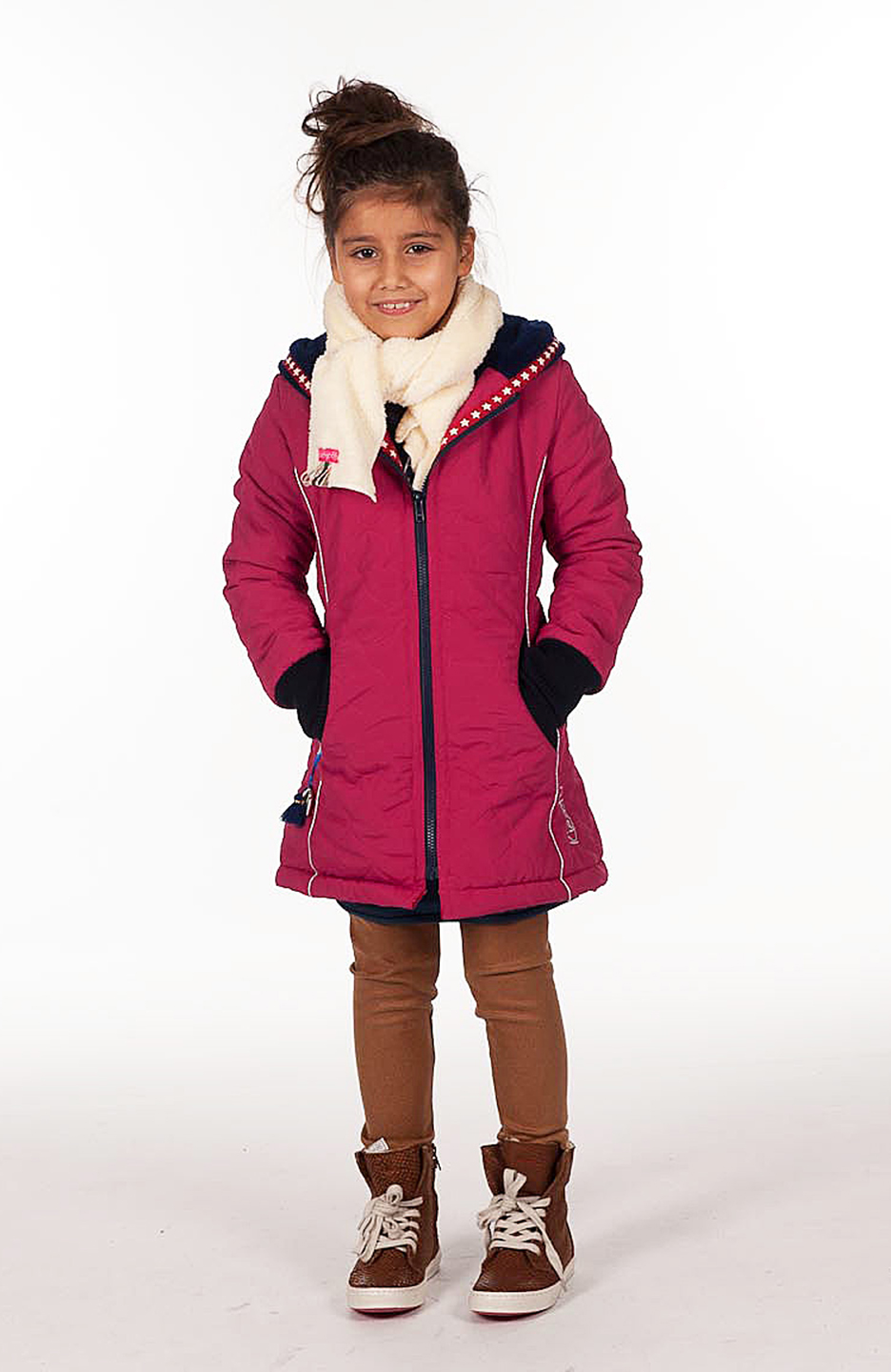 Himmlischer Winter-Mantel von Kiezel-tje in fuchsia mit fester Kapuze. Dieser Mantel hat ein tolles Design und ist innen mit Teddyfutter ausgestattet; der taillierte Schnitt, zwei Eingriff-Taschen vorne, Bündchen am Ärmel und der Rücken-Taillen-Bund und der durchgehende Reißverschluss sind sehr hübsch und sehr Aufwendig verarbeitet.
