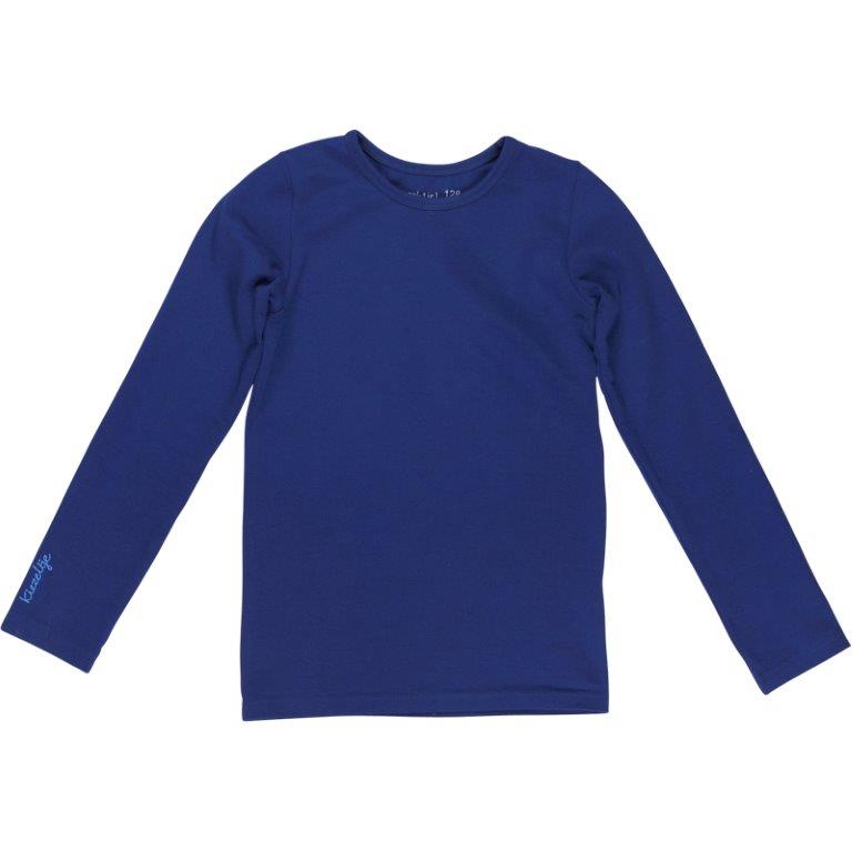 Schönes Basic-Langarm-Shirt von Kiezel-tje in royal blue, am rechten Ärmel mit kleinem Schrift-Logo.