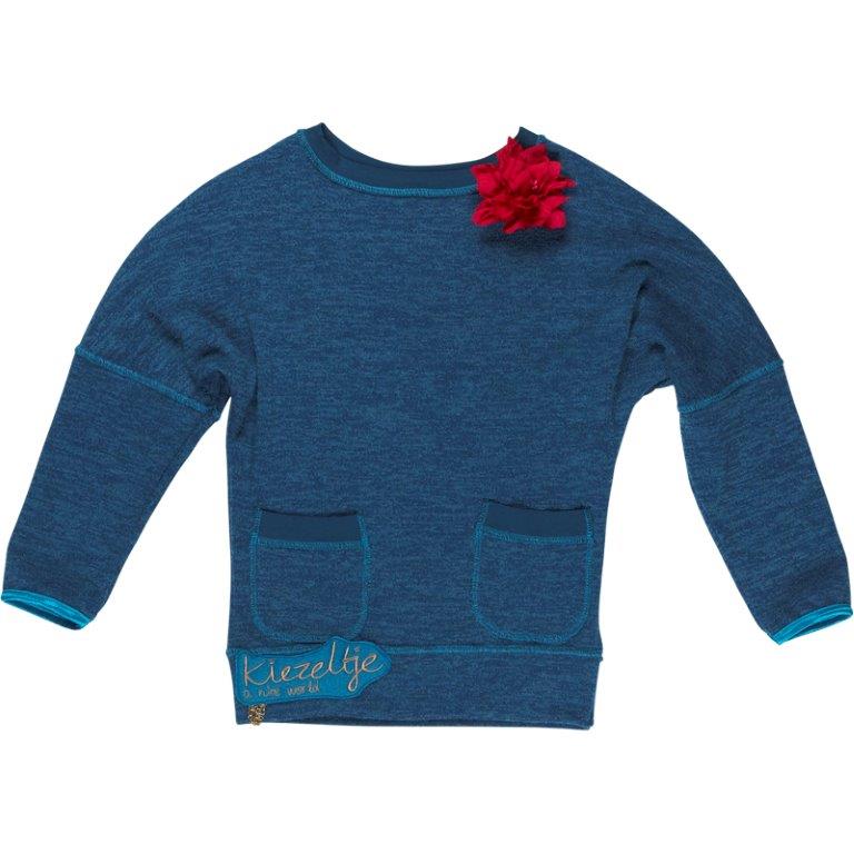 Pfiffiges Langarm-Butterfly-Shirt von Kiezel-tje in petrol mele, breiter Teillenbund vorne mit großem Logo-Patch, zwei aufgesetzte Taschen, die Arme sind schön pumpig/butterfly-Style geschnitten - auffalende Kontrastnähte. Super Kombiteil zu Röcken und Hosen!