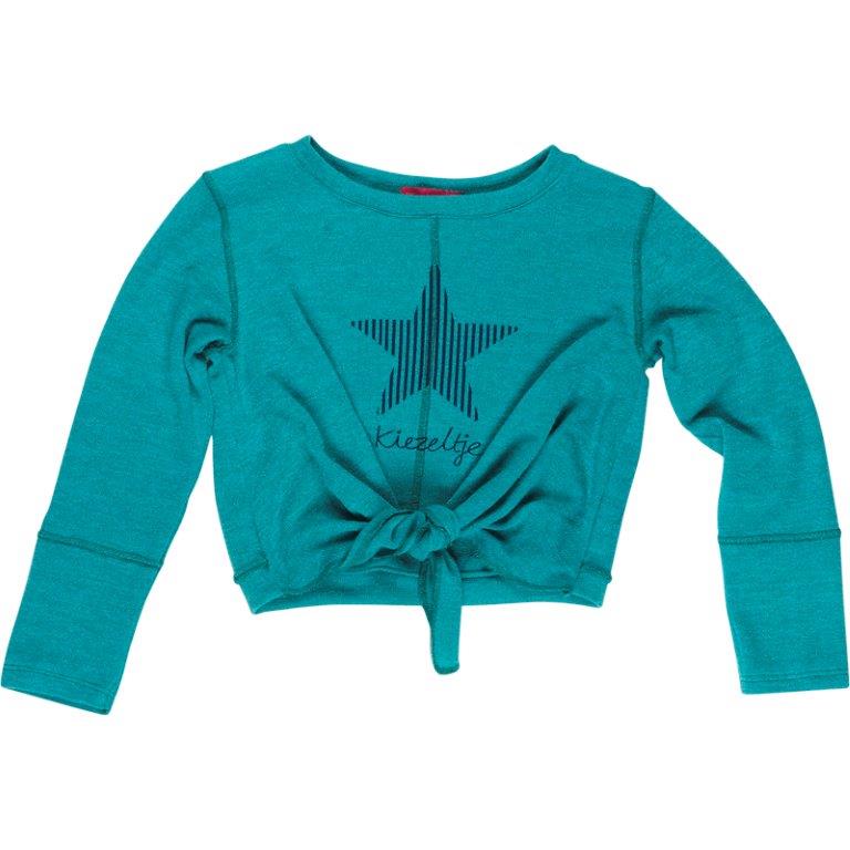 Hammer Strick-Shirt von Kiezel-tje in grün mele mit Rollkragen, Front mit Stern und lässig geknotet; tolle Kontrastnähte. Super als Kombi mit der passenden Chino Hose, zu jeder Jeans oder auch zum Rock der Hit!