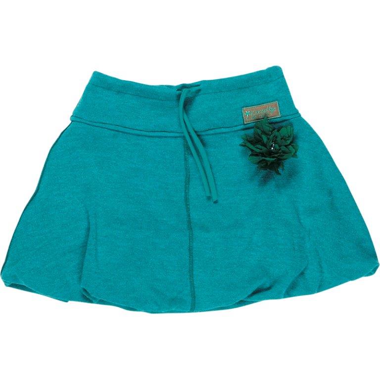 Wunderschöner Strickrock von Kiezel-tje in grün mele, Ballon Form, leicht ausgestellt mit breitem Bund und verstellbarem Tunnelzug; die Blume ist abnehmbar.