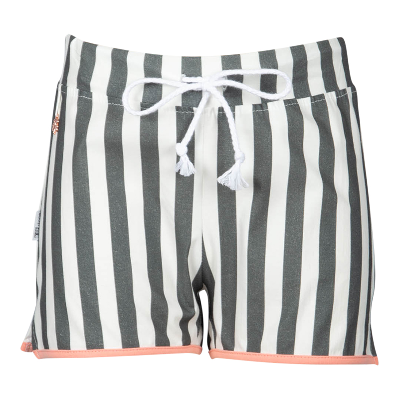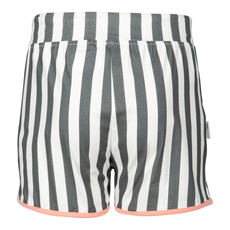 Amazing Short von KIE stone mit Blockstreifen, Beinabschluss mit Borte in coral, Gummibund mit Zugband.