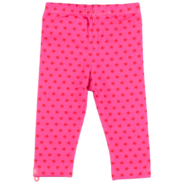 Pfiffige Legging von Kiezel-tje Mini in pink mit Sternen allover und Logo-Patch am linken Bein und Gummizugbund. Diese Legging ist solo oder mit Rock/Kleid, Short ein Hingucker!