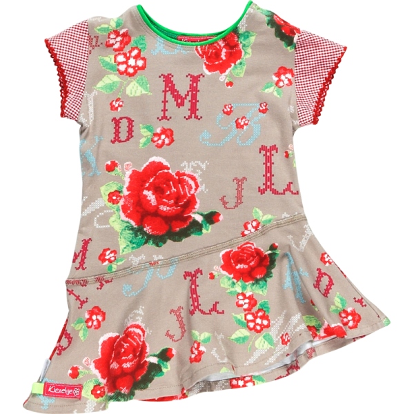 Traumschönes Kleid von Kiezel-tje Mini mit Blumen-Muster, wunderschön im Detail siehe die karrierten Ärmel oder auch den schräg abfallenden Rockteil.