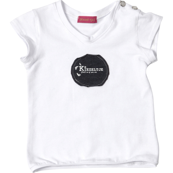 Tolles Shirt von Kiezel-tje Mini in weiss mit V-Ausschnitt und zwei wunderschönen Knöpfen an der Schulter für ein leichtes an und ausziehen und großer Logo-Applikation vorne.