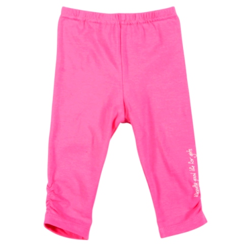 Süße Legging von Kiezel-tje Mini in pink, mit Gummizugbund und gerafften Beinenden - am linken Bein ein Logo-Print.