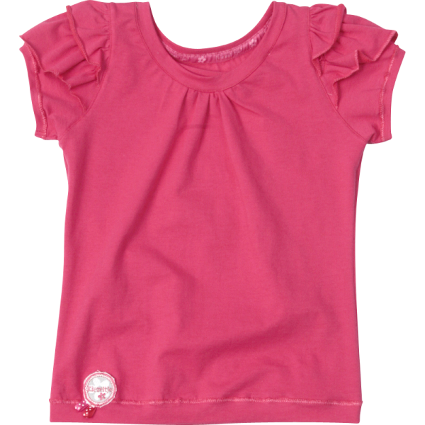Wunderschönes T-Shirt von Kiezel-tje in cerise aus feinem Jersey-Material mit gerafftem Rundhals-Ausschnitt und Rüschen-Ärmchen.