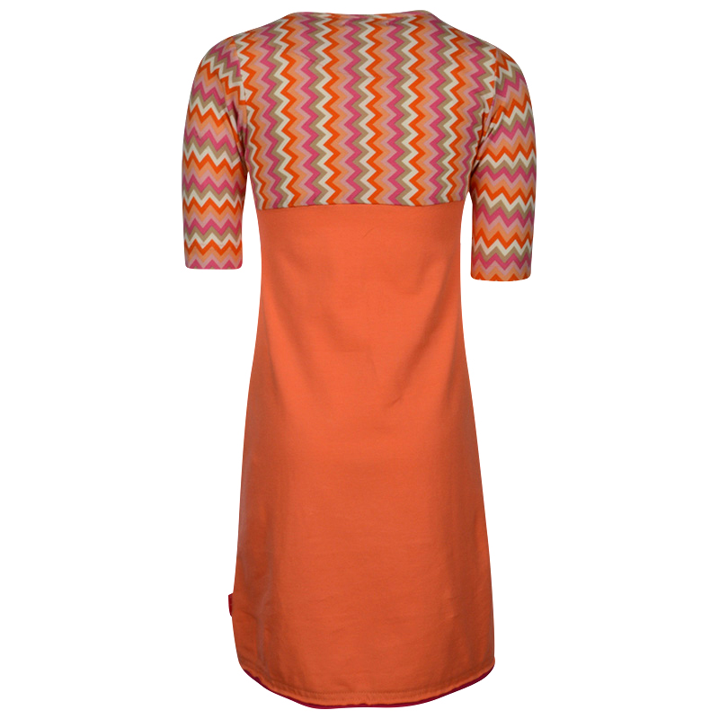Tolles Kleid von Kiezel-tje mit halblangen Ärmeln, oben mit tollem Zickzack-Muster, angenähte Kette, ansonsten uni in pink - zusätzlich natürlich wie immer die Kiezel üblichen tollen Details.