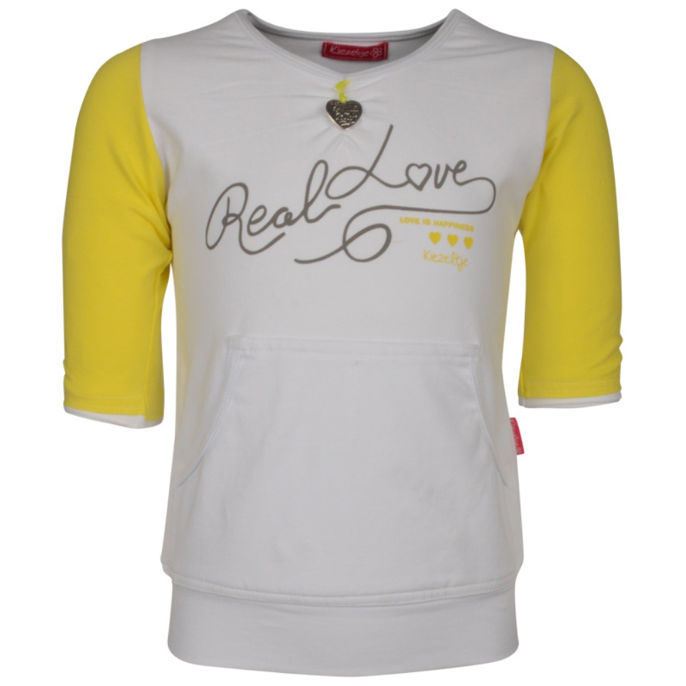 Sportives halbarm-Arm-Shirt von Kiezel-tje in weiß mit Print. Die Ärmel sind gelb.