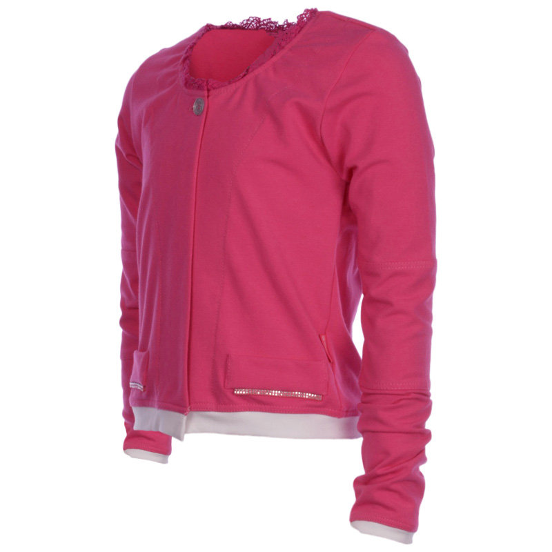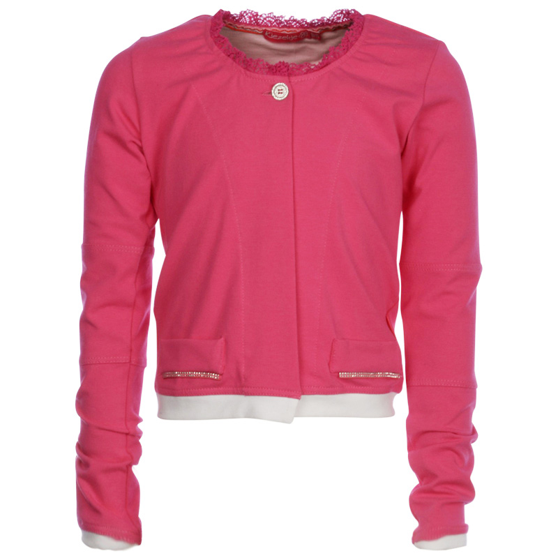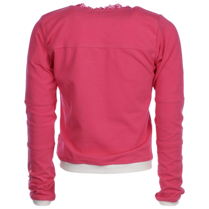 Bezaubernder Cardigan von Kiezel-tje in pink mit vielen schönen Details wie z.B. die Spitze am Ausschnitt.