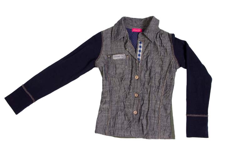 Raffinierte Bluse von Kiezel-tje in green-jeans im Material und Muster-Mix mit hübscher Knopfleiste, Applikaitonen, super aufwendig und schön verarbeitet - eben Kiezel-tje! Ein Hingucker der Saison!
