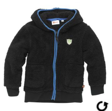Super warme und kuschelweiche Fleecejacke mit Kapuze von Lego Wear in schwarz. Durchgehender Reissverschluss mit zwei Einschubtaschen, Label und Kontrasteinfassband.