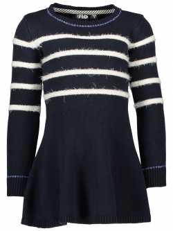 Kuscheliges Strick-Kleid von LIKE FLO in navy, Langarm, mit Streifen an den Armen und am oberen Teil des Kleides.