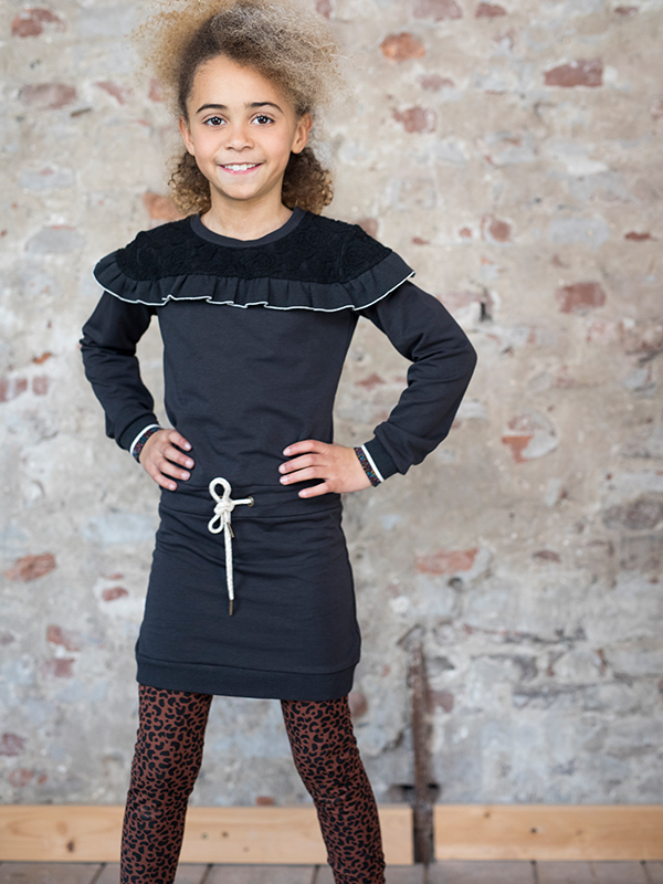 Up to date: Langarm-Sweat-Kleid von LIKE FLO mit verspielten Details wie Spitze und Rüschen. Bequemer Schnitt.