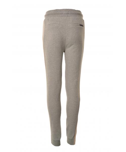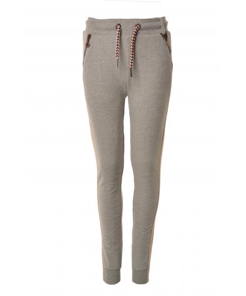 Lässige Sweat-Hose von LIKE FLO in grau meliert mit Glitzerstreifen seitlich, Tunnelzugbund, seitlichen Eingrifftaschen mit Zipper, zwei fake Popo-Taschen, an den Beinenden mit schönem Bund.
