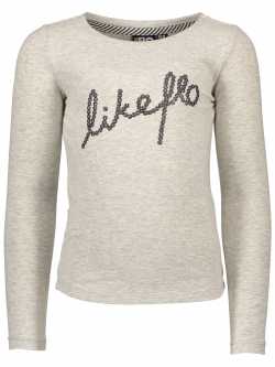 Schönes Basic Langarm-Shirt von Like Flo in grey mele mit Logo " LIKE FLO" auf der Front.