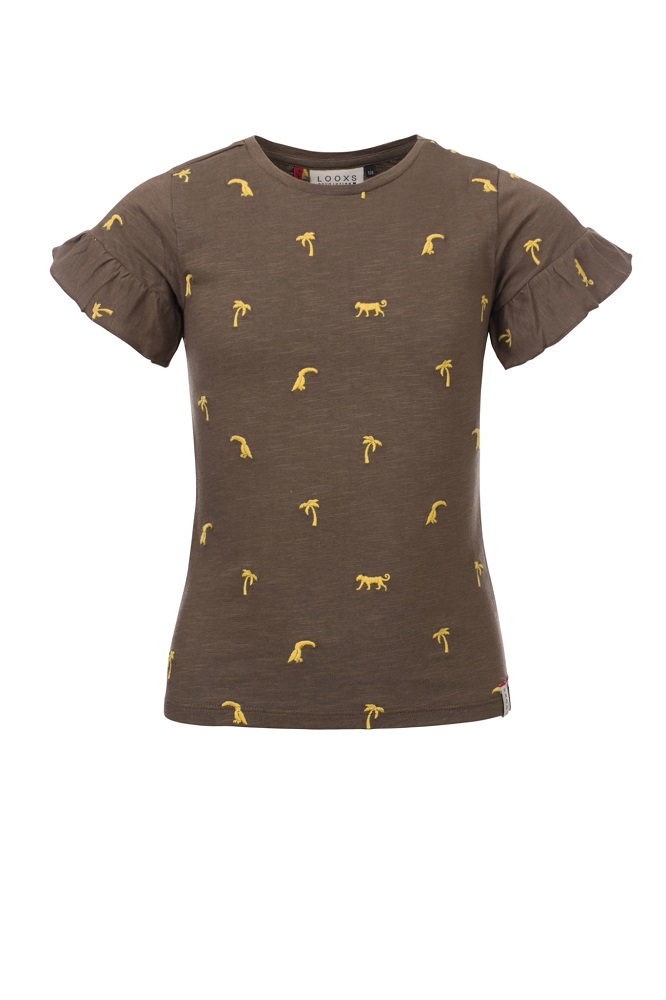 Superschönes T-Shirt mit ausgefallenen allover gestickten gelben Dschungelfiguren. Locker geschnittene Form in einem wunderschönen Baumwoll-Slub-Jersey.