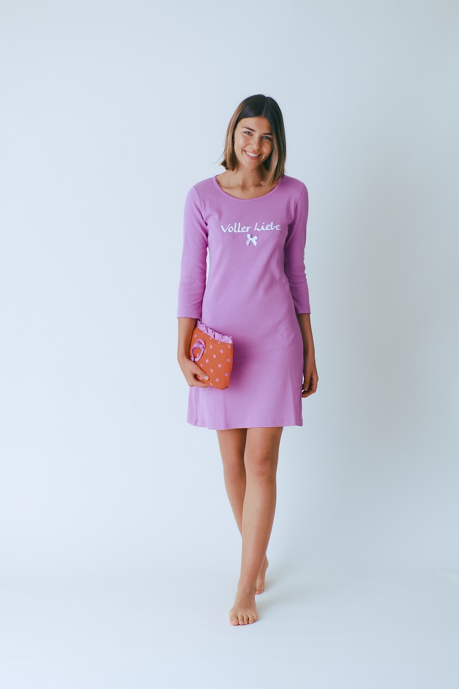 Louis & Louisa Damen Nachthemd Rippe VOLLER LIEBE pink