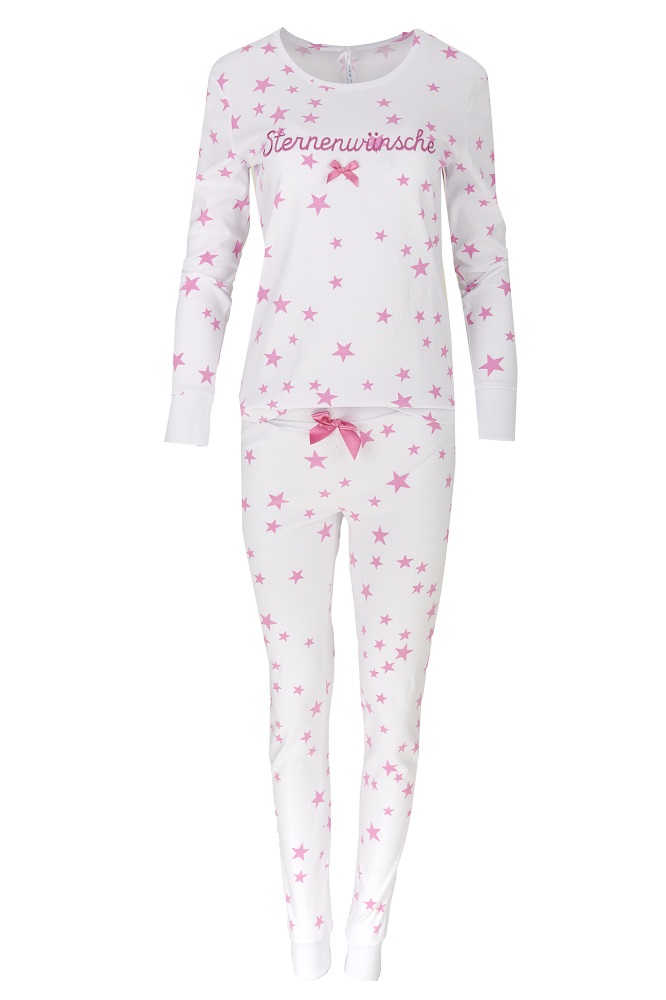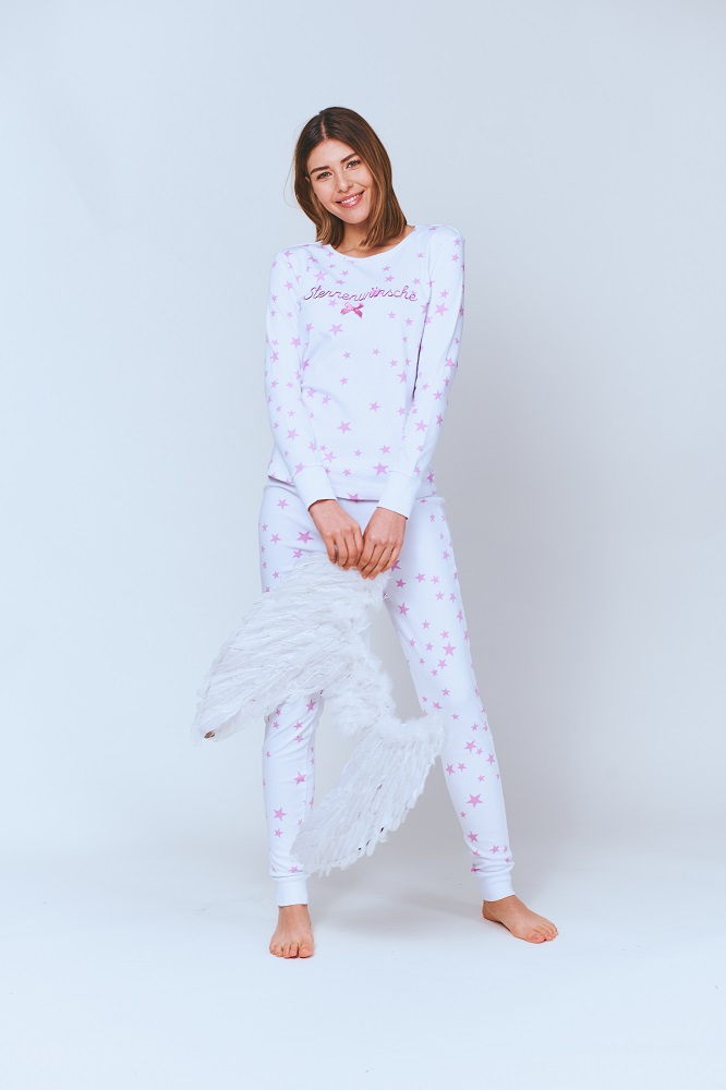 Louis & Louisa Damen Pyjama STERNENWÜNSCHE weiß allover