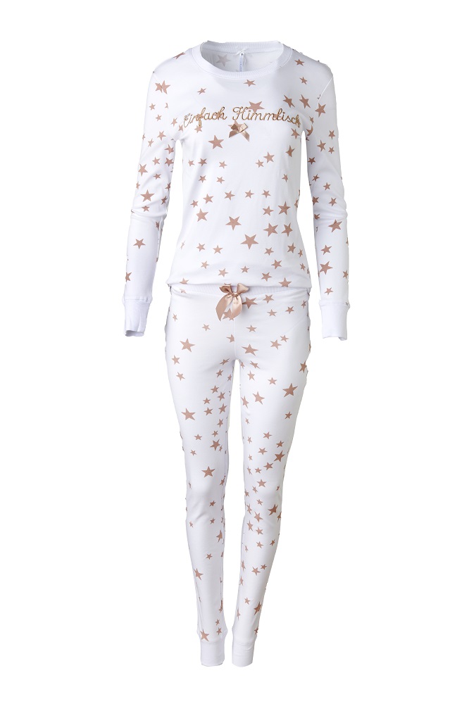 Louis & Louisa Damen Schlafanzug/Pyjama EINFACH HIMMLISCH weiß/ nougat allover L