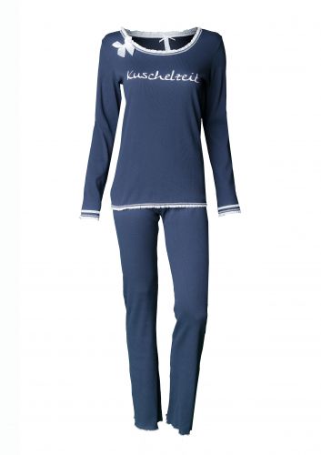Louis & Louisa Damen Schlafanzug/Pyjama Rippe KUSCHELZEIT dunkelblau L