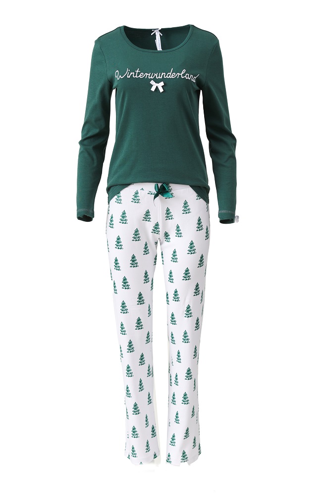 Louis & Louisa Mädchen Pyjama / Schlafanzug WINTERWUNDERLAND grün allover