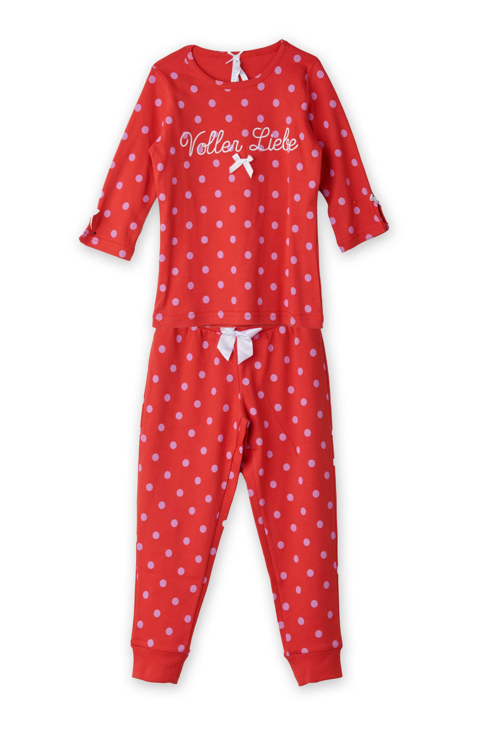 Louis & Louisa Mädchen Pyjama / Schlafanzug VOLLER LIEBE rot allover
