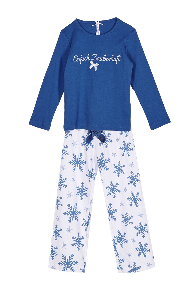 Louis & Louisa Mädchen Pyjama / Schlafanzug EINFACH ZAUBERHAFT blau weiß allover