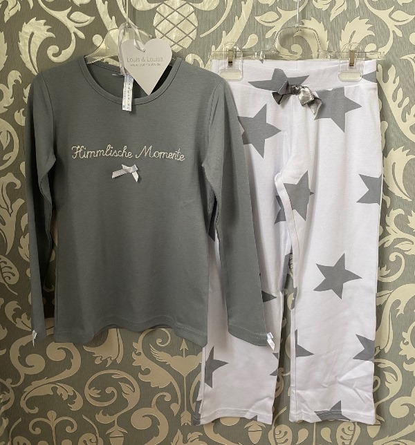 Louis & Louisa Mädchen Schlafanzug/Pyjama HIMMLISCHE MOMENTE grau/weiß allover