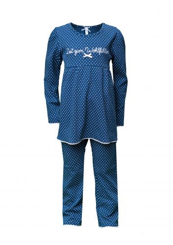 Louis & Louisa Mädchen Schlafanzug/Pyjama ZEIT ZUM WOHLFÜHLEN blau Punkte weiß