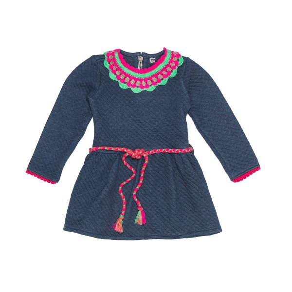 Freches Kleid von Mim-Pi Baby in navy, gesteppt mit superschönem Strick-Kragen, klasse Bindegürtel, hinten mit Reißverschluss.
