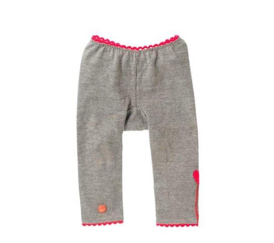 Schönste Basic-Legging von Mim-Pi Baby in grau mit Gummizugbund, Häkelspitze am Bund und an den Beinen; Herz-Stickerei und Kontrastnähte seitlich unten am Bein. Passt super zu allen Röcken und Kleidern dieser Kollektion!