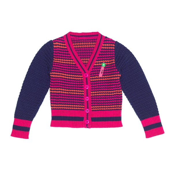 Bildschönes Cardigan/Strickjacke von Mim-Pi in navy pink, vorne in Streifen-Optik und Blockstreifen-Bündchen und vorne mit wunderschönen Knöpfen zu schliessen.
