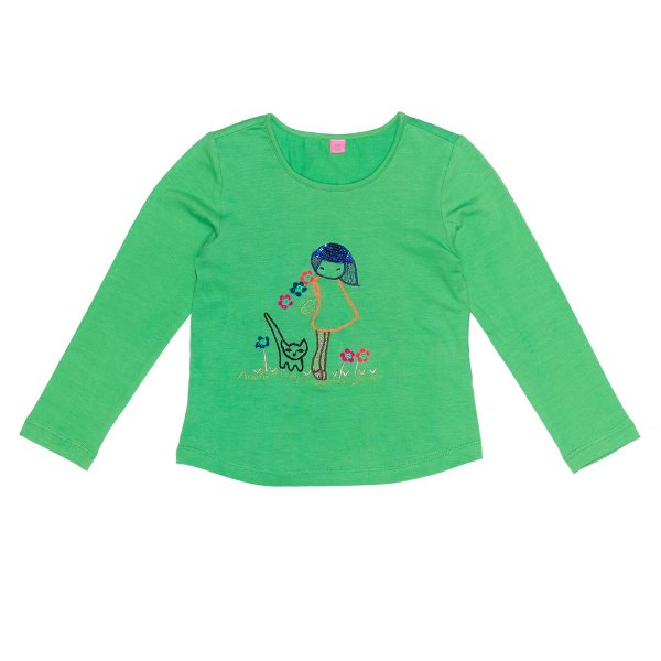 Mim-Pi Langarm-Shirt/Longsleeve Mädchen/Cat-Stickerei grün Gr. 104