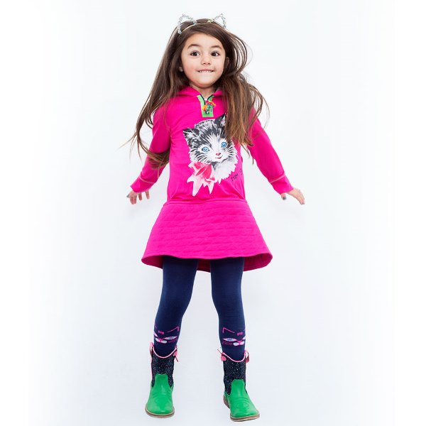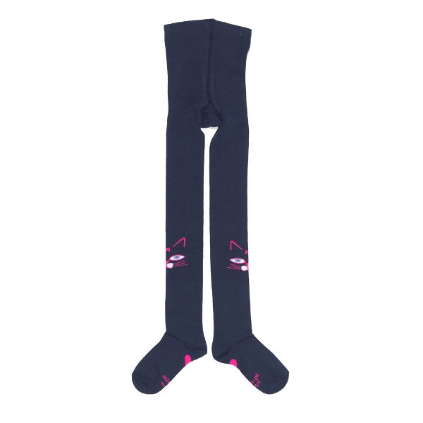Hübsche Strumpfhose von Mim-Pi in navy mit Katzenkopf-Abbildung am Bein.