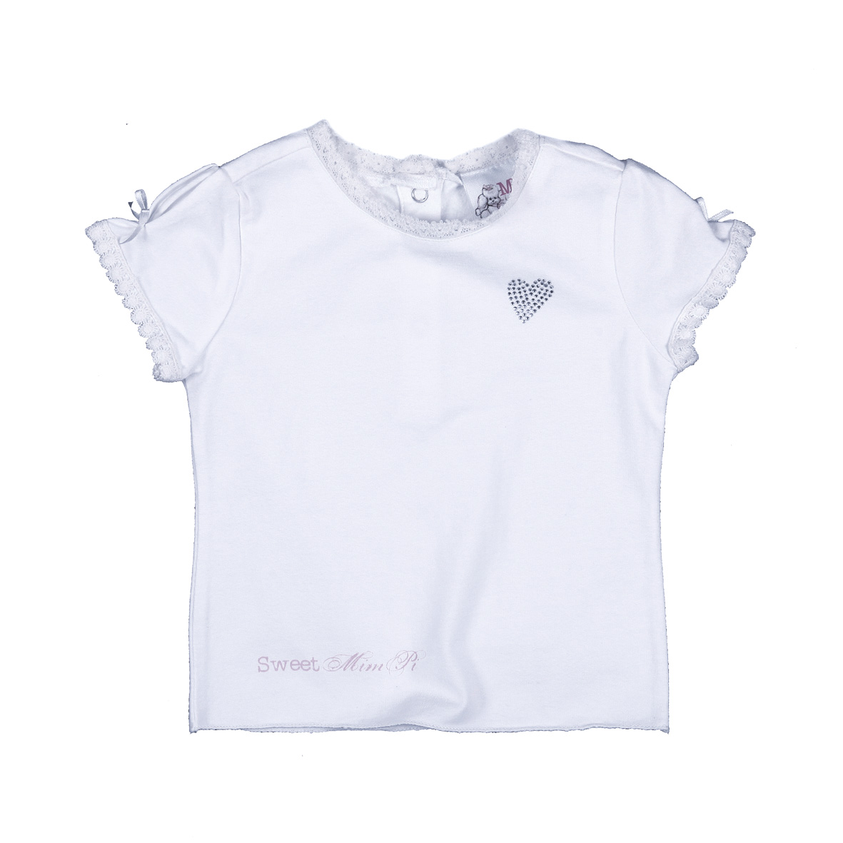 Schönes T-Shirt von Mim-Pi in ecru mit Herz aus Strasssteinen vorne.