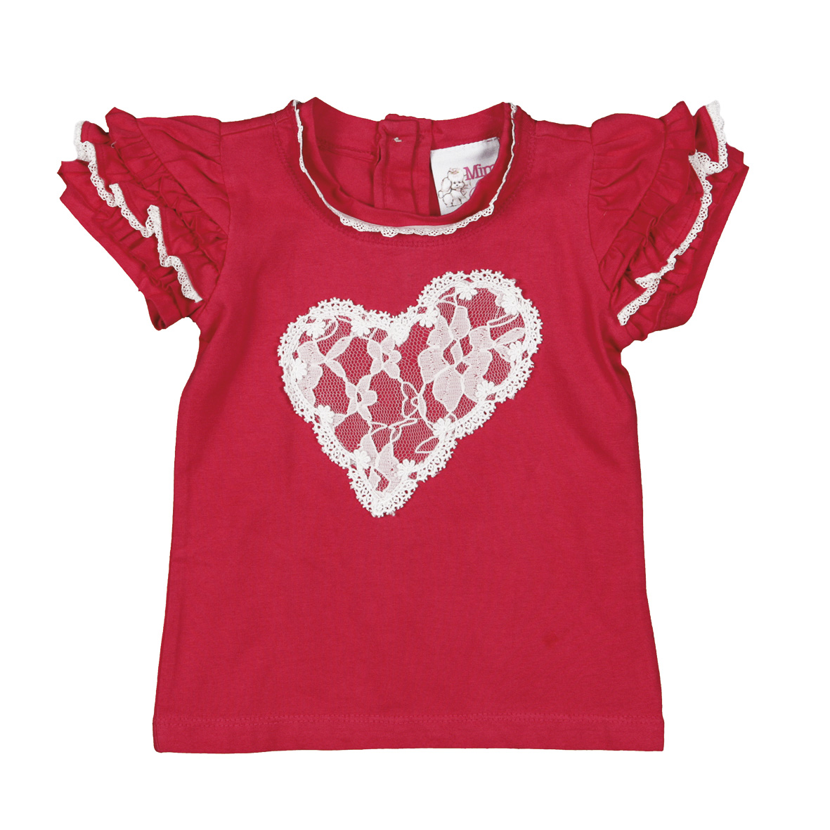 Schönes T-Shirt von Mim-Pi in rot mit großem Herz vorne und auffallenden Rüschen-Ärmeln.